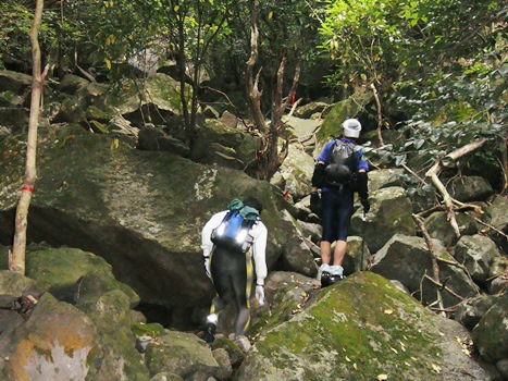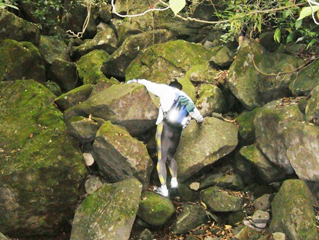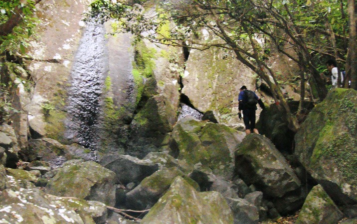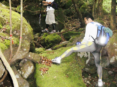 水はほとんど流れていなかったので助かりましたが、岩の上にはコケが生えていて滑ります。滑ったら大ケガです。