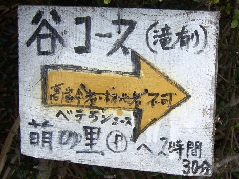 沢コース(=谷コース)にはここから左折します。その先に谷への入り口があります。地獄の入り口と言ってもいいでしょう。