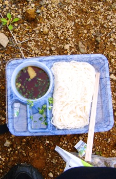 護王峠で昼食(10:30)。15分休憩。ここでソーメンをいただきます。山で食べる麺類は最高です。
