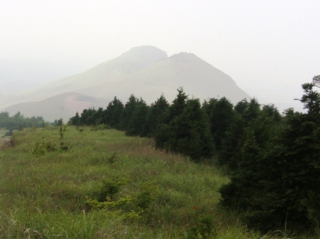 まず正面の柵のしてある所をくぐります。天気予報では曇り晴れでしたが、俵山山頂はご覧のように雲の中です。