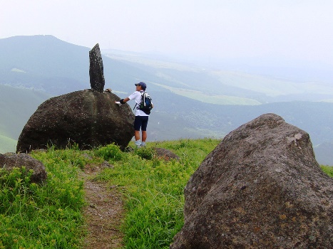 山頂に石碑が建ててあります。これは遠くから見ると人が立っているように見えます。