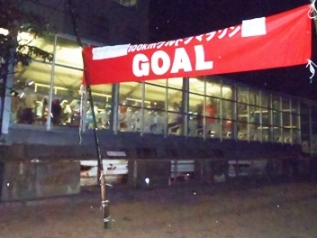 初音旅館の裏手がゴール。横断幕を持ってお出迎え。