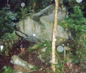 「家の石」:昔こども達がこの石の下で雨宿りをしていたのでこういう名がついたそうです。「石の家」ではありません。