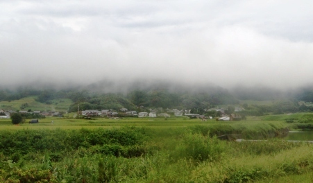 山を下りて振り向くと山頂は雲の中。山中はずっと小雨でした。