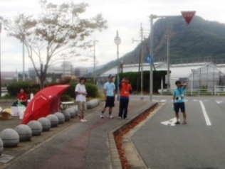 前日雨で線が消えたとのことで、選手より先に行って江口さんが線を引き直したとか・・・大会に対する想いが伝わります