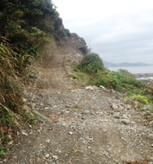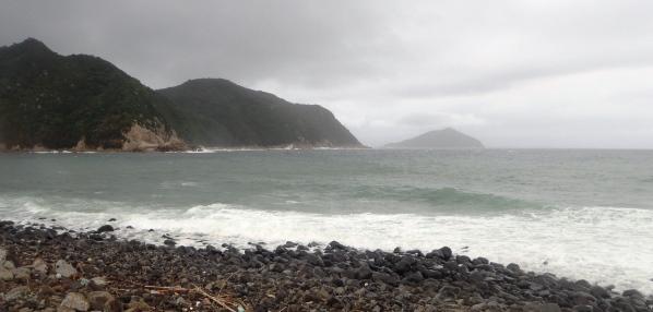 30分で山を終え、やっと海岸にでてきました。もう上りはありません。制限時間まで1時間23分。ゴール間違いなし。