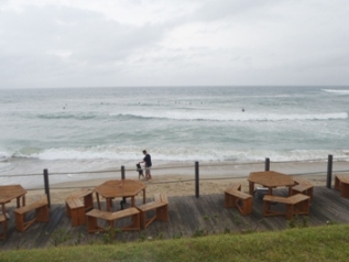 若者でいっぱい。強風の中サーフィンしていました。好きですね。しかし我々も強風の中走ってます。好きですね。