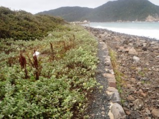浜辺の道は草で覆われて見えないところもあり、海岸で藪こぎとは・・・おもしろい