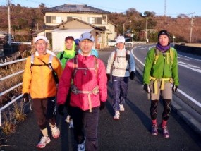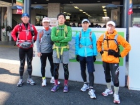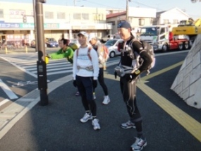 午後2時35分、5名で熊本駅前をスタート。気温10度、晴れ。最高のマラニック日和です。