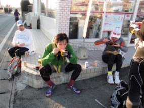 20kmコンビニで早くも食事。さすがウルトラマラニッカー、みなさんよく食べます。