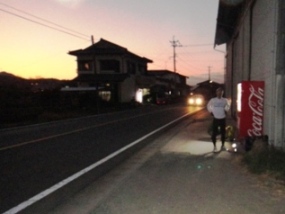 植木から県道3号線へ。菊水あたりで日が沈み、夜間装備に切り替え。かなり冷え込んできました。
