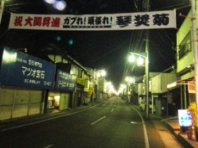 70kmあたり(大川市)。遊船乗り場に船がいっぱい。琴奨菊の出身地のようで垂れ幕がありました。