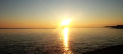 午前7時30分、やっと有明海に出ました。ちょうどここで日の出。海からの日ノ出はすばらしい!