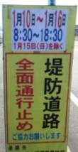 諫早堤防に入ったところで「通行禁止」の看板!よく読むと2日後から、ほっとしました。
