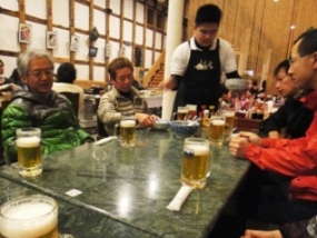 午後6時近くの居酒屋で打ち上げ。お待ちかねのカキ・馬鹿でかい天丼を食べました。