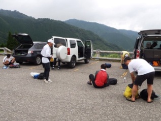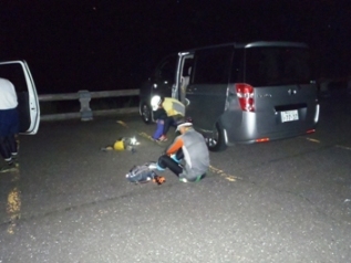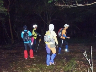 午前0時35分、車3台に分乗して光の森駅出発。2時30分スタート地点の「五ヶ瀬ハイランドスキー場駐車場」に到着。