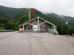 左写真の赤矢印はリフトが上がる所。人が乗るリフトはかたずけられていました。