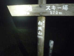 ゲレンデを登り向坂山(1684m)登頂(18分)。午前3時50分。