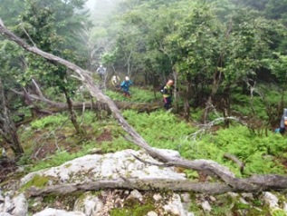 国見の手前で道を外れ、また道なき道を登りました。とにかく道がわかりずらい。GPS・コンパスは必携。