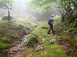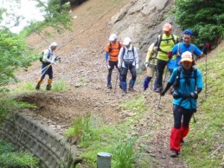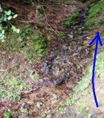 青線の横には沢がありそこで給水。おもわず、その目の前のガケを登ることに(最初に登った奴は誰だ!)。