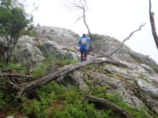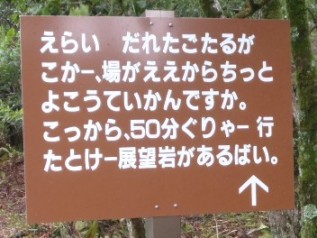 途中、展望岩があり登ってみましたが、「ガスでなーんもみえんバイ」。