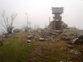 国見岳山頂には立派な祠があります。それが見えてきました。
