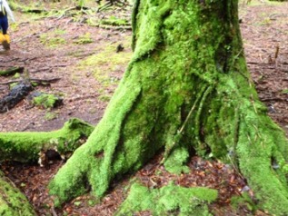 木はふわふわの緑のコケに覆われています。