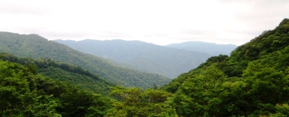 お昼ごろからガスが晴れてきました。九州脊梁山脈です。すばらしい。しかし、どこがどこかわかりません。