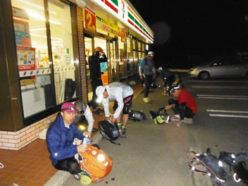 近くのコンビニで朝食。7:40スタート。田代エイドへ。