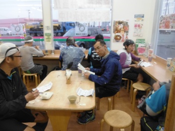 大津のヒライで朝食(30分休憩)。ここで上野、宮田、GOさん達が終了。新たにMTBさん合流。12名で再出発。