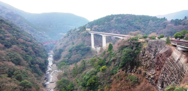 長陽大橋(86km・9:40)。大津→立野間、2時間で走行。