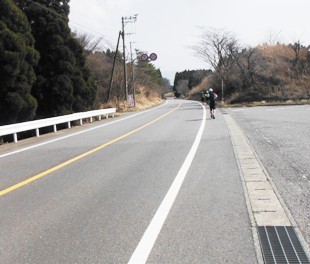 「マミコゥロード・164km」11:00.ここから8km下り道。飛ばします。