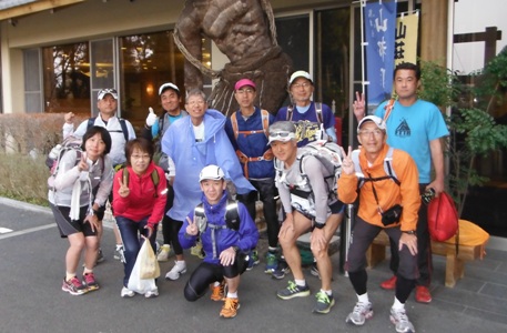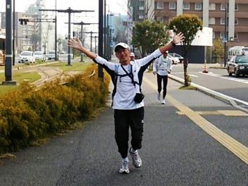 15:10やっと熊本駅に着きました。駅前には先にゴールした仲間と。坪根、上野さんも出迎えに。