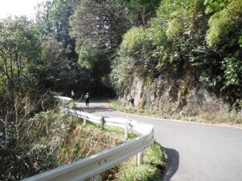 南阿蘇86km〜103km。火山灰が道路に積もっていました。みなさん快調。(10:30)
