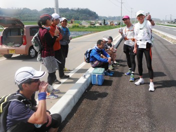 下りを終え、御船町で全員集合。ここで休憩し、残り17kmはゴールまで自由走。
