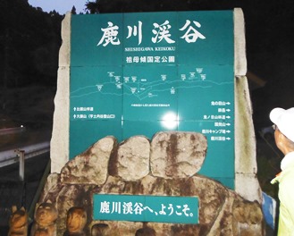 4時50分に鹿川キャンプ場手前の駐車場でトイレ、着替え。自販機もある。