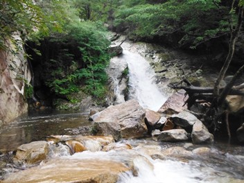 昨日の雨で水量も多く、危険と判断し雌鉾は断念。