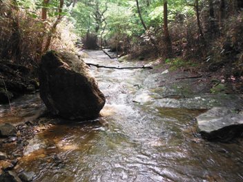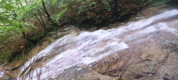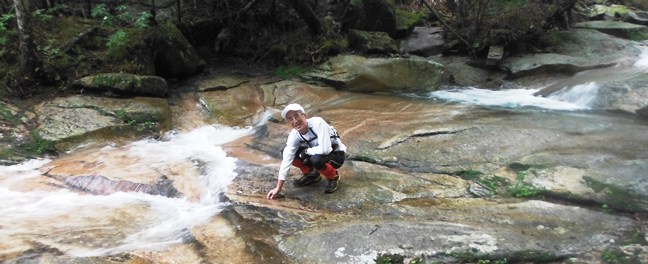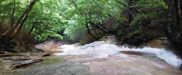 さらに上流に行くと、一枚岩を流れる渓流がきれい。寒いのでドボンはできず。