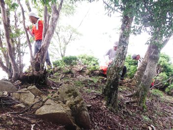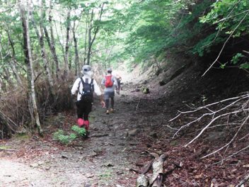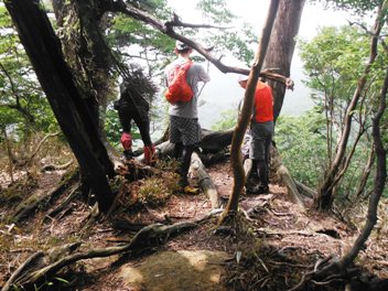 渓流を終えて鉾岳⇔国見山・鬼の目山分れへ。今回は鬼の目山へは行かず(藪こぎ状態とのこと)。