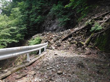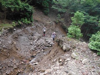 あとは林道を10km下るのみ。ところがこの林道、10ヶ所以上で崩壊。