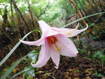 @「ササユリ」:九州では宮崎のいくつかの山でしか見られないとのこと。葉が笹の様です。