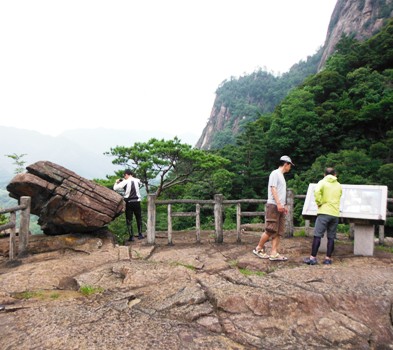 鉾岳展望所にてキモ試し(7時)。絶景だが、絶壁です!