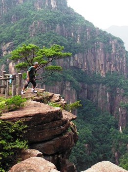 岩の先は絶壁です。肝試し。(良い子のみんなはマネしないように)