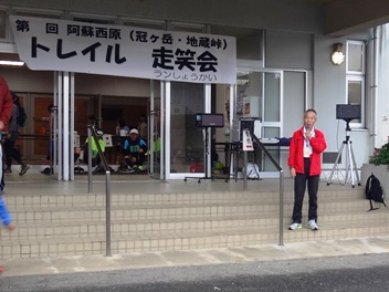 8時25分から開会式。会長は西原村陸上競技協会の河上氏。