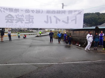 会場は「西原村立河原小学校」。運動場に車を停めて体育館で受付、着替え。参加者は60名。