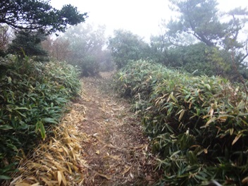 12k、冠ヶ岳に近づくにつれて雲の中へ入っていきます。風が強くとても寒い。