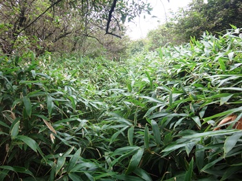 地蔵峠手前1kは1ヶ月前に通った時は藪こぎ(右写真)でした。今回はきれいに刈ってありました。