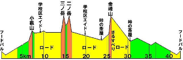 ●Aコース(42km)、4つの山(小萩山、三の岳、二の岳、金峰山)をかけ上るコースです。
