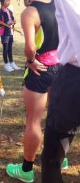 急きょ、座ってストレッチ。それ以後、スピードをあげるとつりそうになるので、ここで記録は断念。