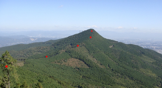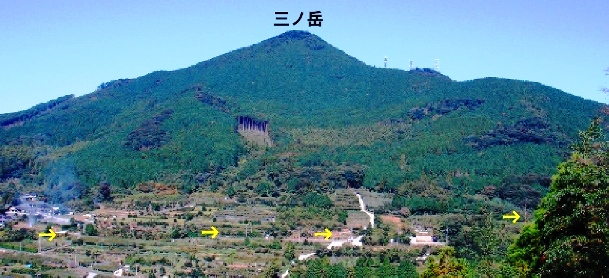 三ノ岳山頂横に見える鉄塔です。横にお寺があります。
